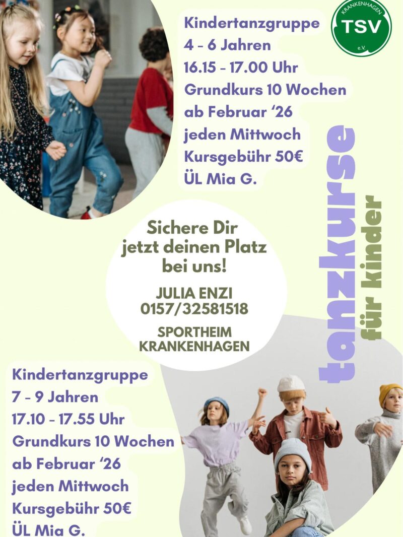 Ab Februar 2026 erweitert der TSV Krankenhagen sein Sportangebot um Kindertanzen. Mit Musik, Bewegung und ganz viel Spaß können Kinder...