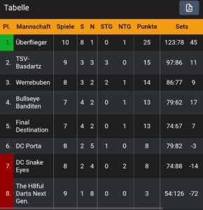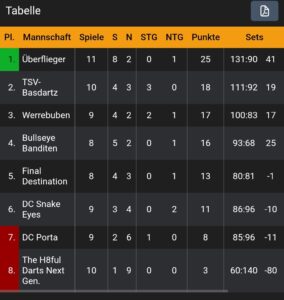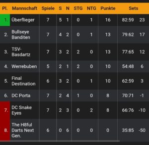 Weiter geht es nun am kommenden Samstag mit einem weiteren Heimspiel, Gegner diesmal der Tabellenführer „Überflieger“. Um dort zu bestehen, braucht es von allen einen Sahnetag und auch etwas Glück. Das Hinspiel wurde ebenfalls mit 11:10 gewonnen.