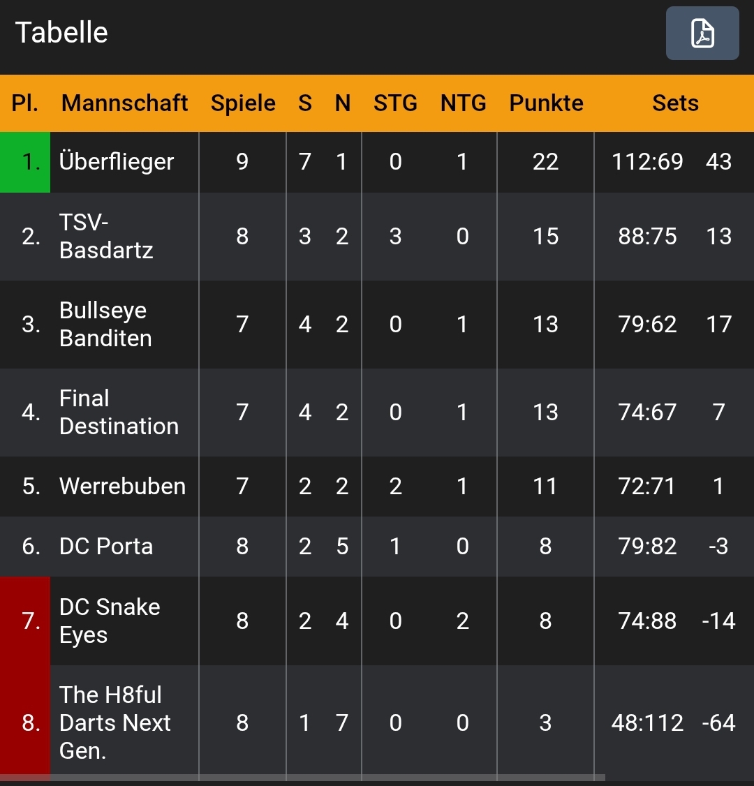 Das nächste Spiel ist am 19.3.2022 um 18:45 Uhr in Nammen gegen die „Jägermeister Darters 4“