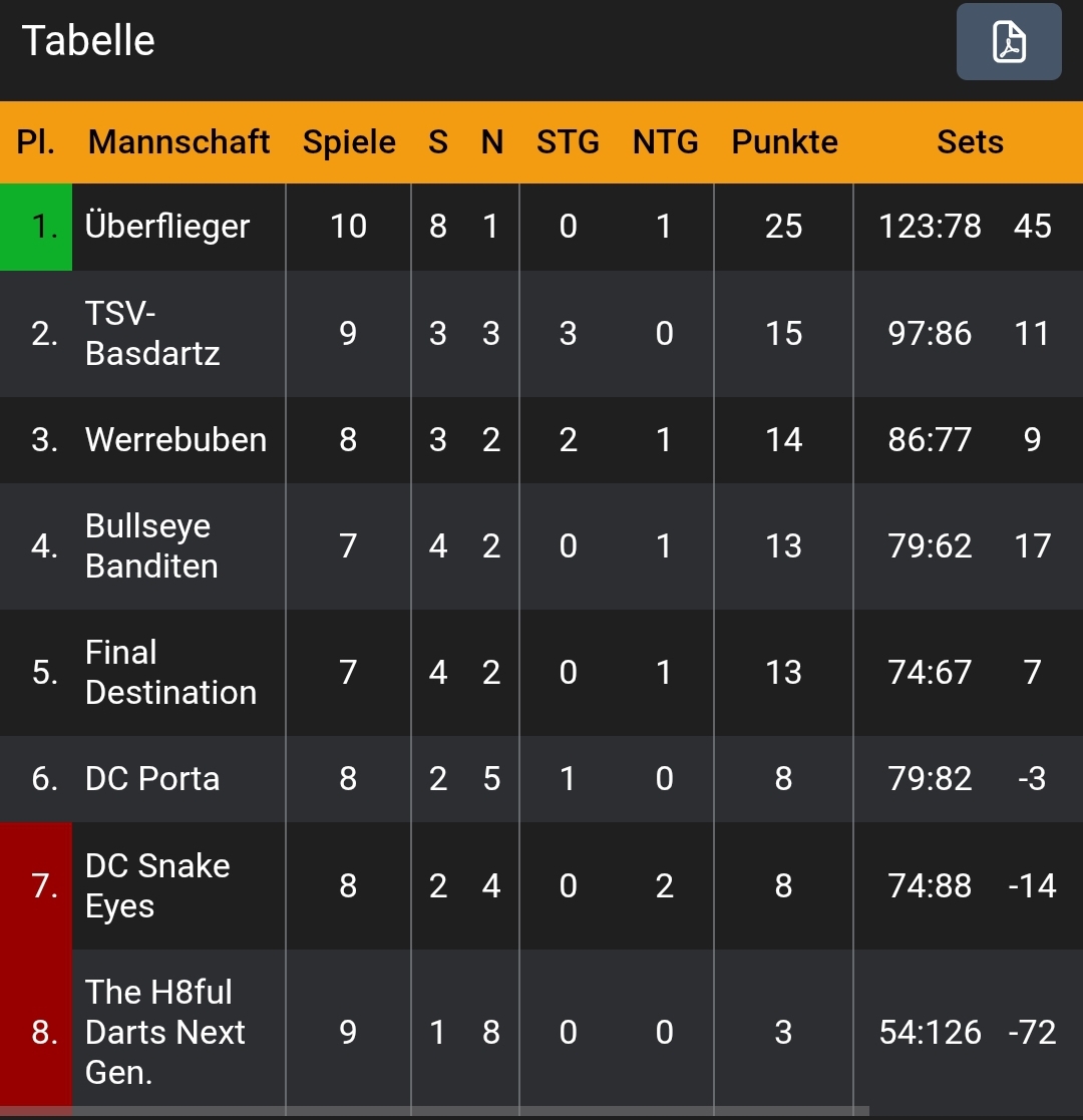 „DC FUNDarters“ gegen die TSV-Basdartz 13:7